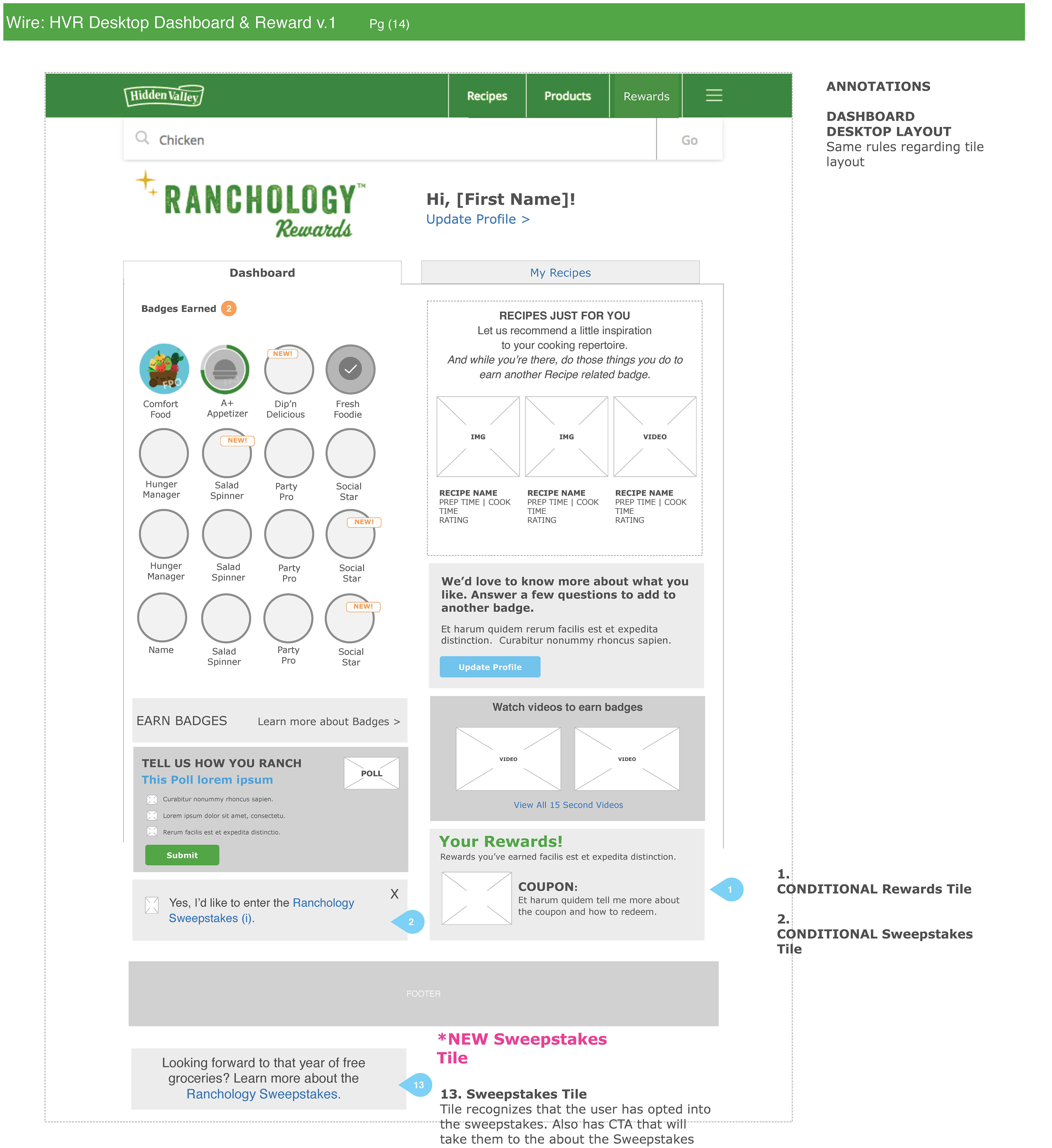 Hidden Valley Ranch set out to build more than just a traditional rewards program. Instead of a basic “buy and earn” model, they wanted a gamified experience that kept users entertained while racking up points and prizes. The challenge was to design a GUI that captured this spirit—fun, exciting, and highly engaging from the very first interaction.