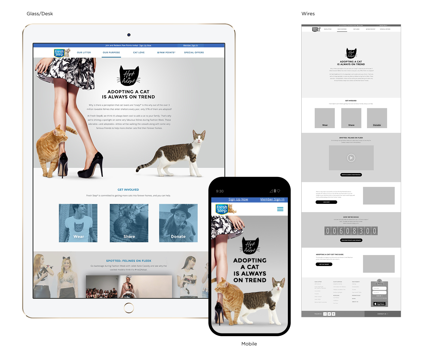 Fresh Step launched a campaign to raise awareness about cat adoption and to debunk the "Cat Lady" stereotype, out to prove that a woman who loves cats is not an old recluse but a stylish, lit, and confident individual. As Product Designer and AD, I worked with the copywriter and developers to create a feline-fashionable experience.