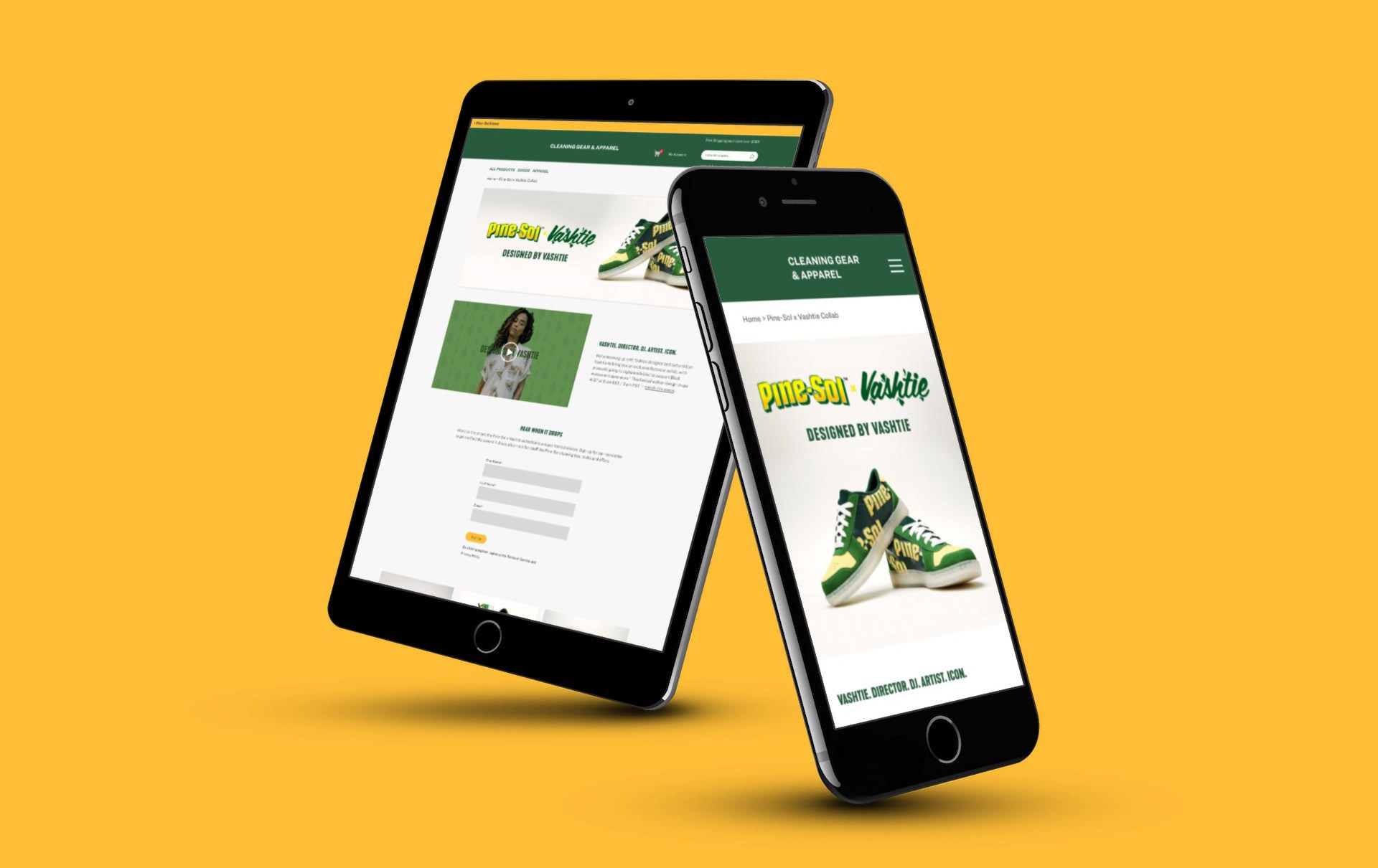 Pine-Sol teamed up with the ultra-talented Designer/Director/DJ Vashtie for a sneaker collab that was pure heat. They tapped us to design a sleek, minimal landing page to handle pre-orders. The hype was real—when it dropped, the sneakers sold out in minutes👟🔥🔥