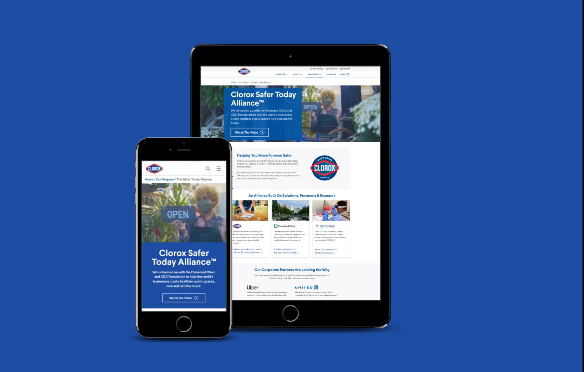 At the height of the pandemic, Clorox was a leader in solutions preventing the spread of the C19 virus. They created the Safer Today Alliance. A coalition of major corporations dedicated to preventative measures in their customer-facing business practices. A landing page was needed to provide information about the initiative.